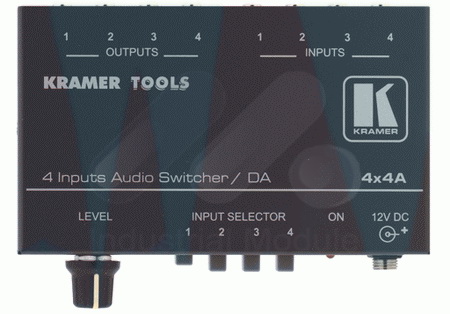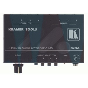4x4A - высококачественный коммутатор 4x1 для стереофонического аудиосигнала. Его выходной сигнал одновременно распределяется на четыре одинаковых выхода.